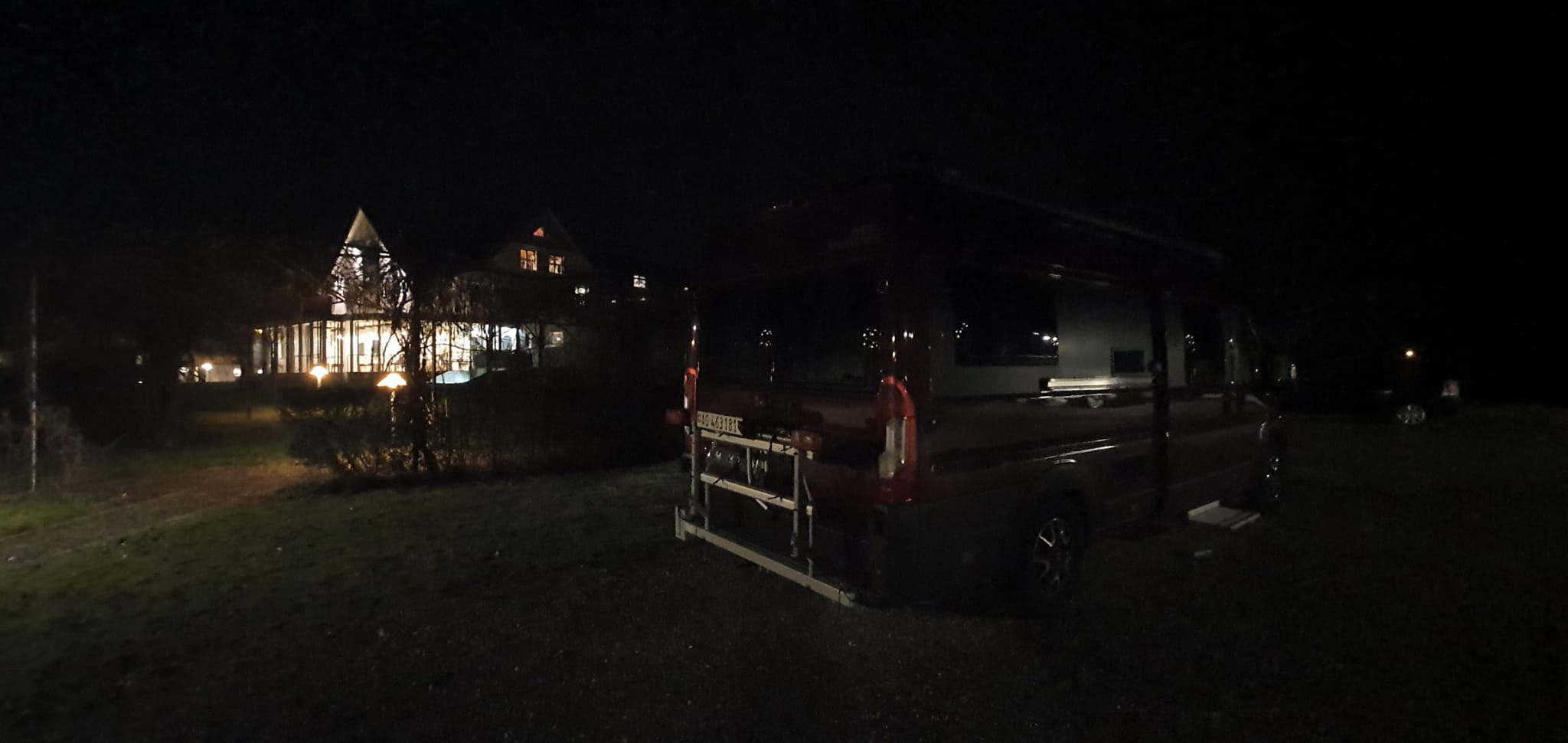Die Gastgeberfamilie hat sich gut auf uns Wohnmobilisten eingestellt, sodass Stromkabel für die vorderen Parkplätzle bereitgestellt wurden und für die Gäste nutzbar sind – doch da wir über eine Solaranlage verfügen, haben wir uns dazu entschieden, uns auf einem der etwas weiter weg von der Strasse gelegenen, hinteren Parkplätze zu stellen – ob das eine gute Entscheidung war?